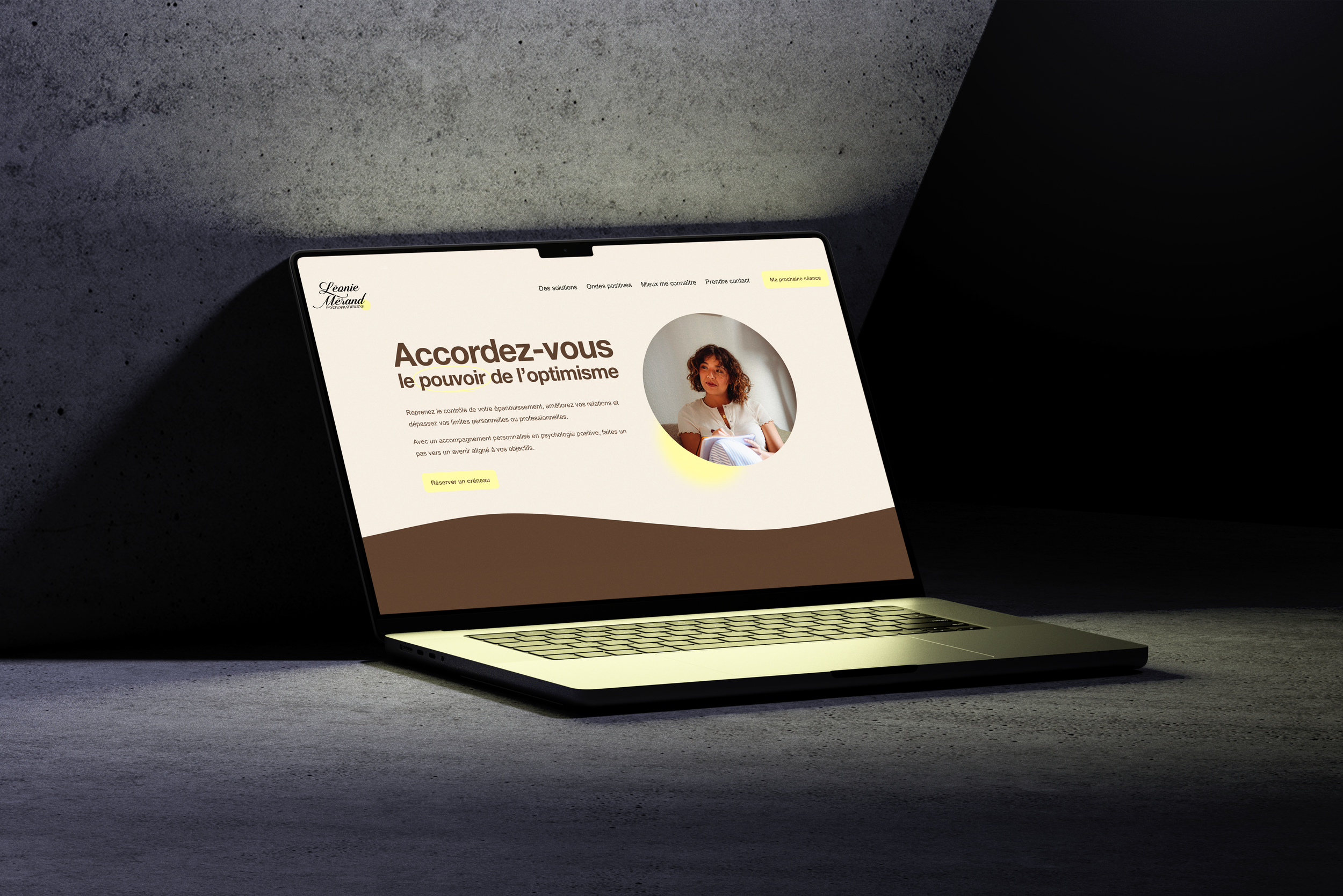 Pour accompagner le développement de son activité en psychologie positive, Léonie Mérand souhaitait une identité visuelle qui incarne pleinement les valeurs au cœur de sa pratique : le bien-être, la résilience et le bonheur.